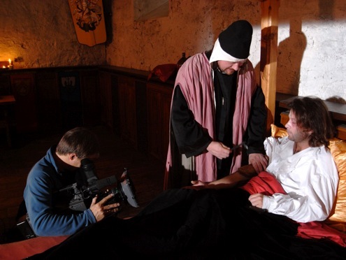 Wunschlisten abarbeiten und im Fundus mehrere Einkaufswagen mit Kerzenhaltern, Schalen, Krügen und anderem äußerlich authentischem Kram vollpacken. Ansonsten sollte man sich schulterzuckend damit abfinden, dass ein Mittelalter-Darsteller durch eine Renaissance-Kulisse stolpern muss. Wenn er dabei nicht gerade eine digitale Armbanduhr oder eine Kassenbrille trägt, kommt das schon ungefähr hin. Hier geht es schließlich nicht um einen Spielfilm, sondern um einen gewöhnlichen Magazinbeitrag für „Hauptsache gesund“.