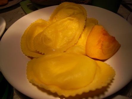 succo di pesce bittet. In Castel Gandolfo jedenfalls bekommt man an diesem Wochenende Pfirsich in den verschiedensten Formen der Verarbeitung. Pfirsich in Wein, Pfirsich am Spieß in den Schokoladenbrunnen getunkt, schließlich sogar Ravioli mit Ricotta und Pfirsich gefüllt. Schmecken wunderbar mit ein wenig